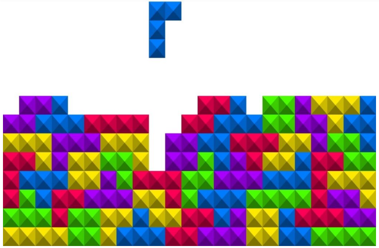 The coloured bricks, of various shapes, fall from the top of the screen. It’s up to you to orient them as they fall, so they fit into each other.