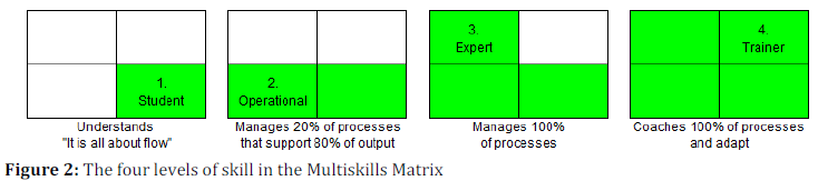 Too many businesses experience symptoms of flow disruption due to missing skills at critical times. Depending on how often and how long it takes to find an alternative, skills scarcities are like bottlenecks, obstructing a company’s profitability, growth, and capability to innovate. In order to anticipate future flow blockages due to missing skills, decisions to finance hiring or training for specific skills are taken at the strategic level, with feedback loops at the tactical level to secure implementation. A visual approach to priorities can be used in a similar fashion as stock, time and capacity buffers. Assessment of the company’s Skill buffer enables monitoring of the progress in change management. The Demand Driven Skills Model (DDSM) Used in combination with the DDOM, the DDSM allows visualization of where, in its own complex system of departments and workshops, a company must invest to protect its flow (figure 1). To acquire and maintain the essential resource of human skill, the DDSM addresses where the priorities are by means of a fourth buffer type, a skill buffer, to be used in combination with the other buffers of the DDOM. ![]() The Skill Buffer Symbol This first step is the visual approach to gaining missing skills per department. As a second step, when a company has matured in protecting flow, the colors can be used to show the availability of internal trainers to teach innovation that will promote flow in each of the key processes of the company. The Multiskills Matrix ![]() The requirements for each level must be customized to each company’s activity and maturity. The number shown on the skill buffer symbol indicates the average level of employee skill, calculated using the green squares, that a group of skills, a function or a department can demonstrate.